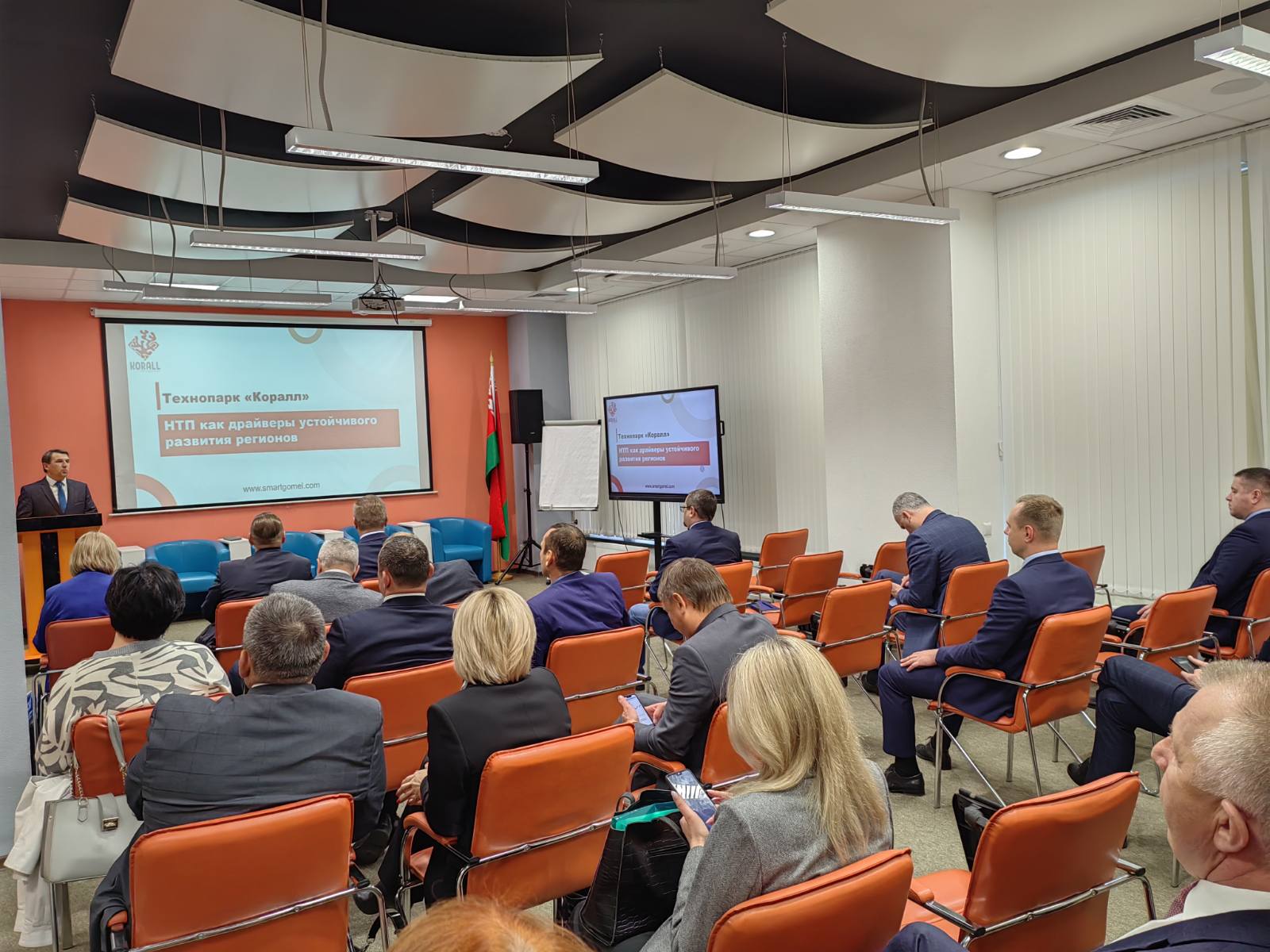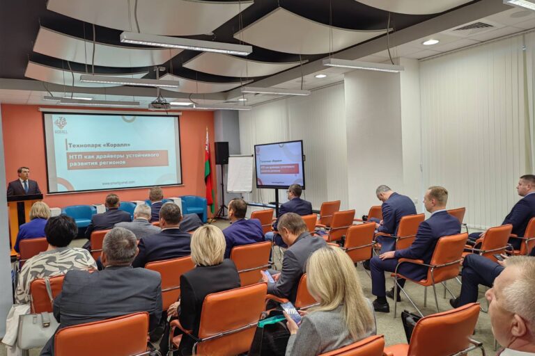 23 октября на базе «Технопарка «Коралл» прошла дискуссионная площадка «Клуб директоров», в которой приняли участие руководители крупнейших предприятий г. Гомеля и Гомельской области. В рамках мероприятия директор РУСП «Агентство развития и содействия инвестициям» Бобович А.П. провел для участников ознакомительную экскурсию по технопарку, резидент технопарка ООО «Идэй Роботикс» познакомил со своими инновационными разработками.